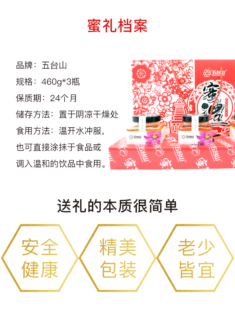 五臺山剪紙蜂蜜禮盒460gx3瓶